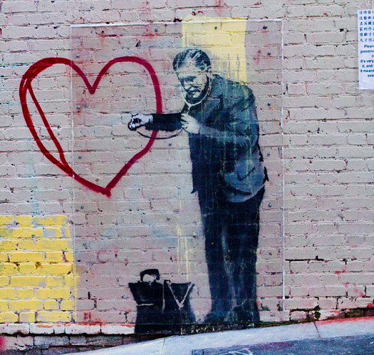 Image via Flikr Creative Commons. Bansky’s “Peaceful Hearts Doctor” courtesy of Eva Blue.