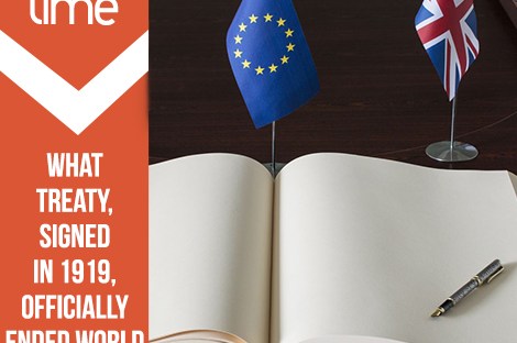 On June 28, 1919, this treaty was signed, officially ending World War I. Do you know it’s name? (The answer is hidden below.)
