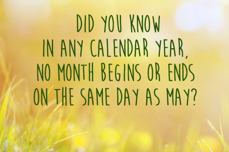 We’re flipping through our calendars right now in awe! What a fun fact for a bright, spring month. We hope you enjoyed taking a timeout today to share in this interesting trivia. Now, pass it on!